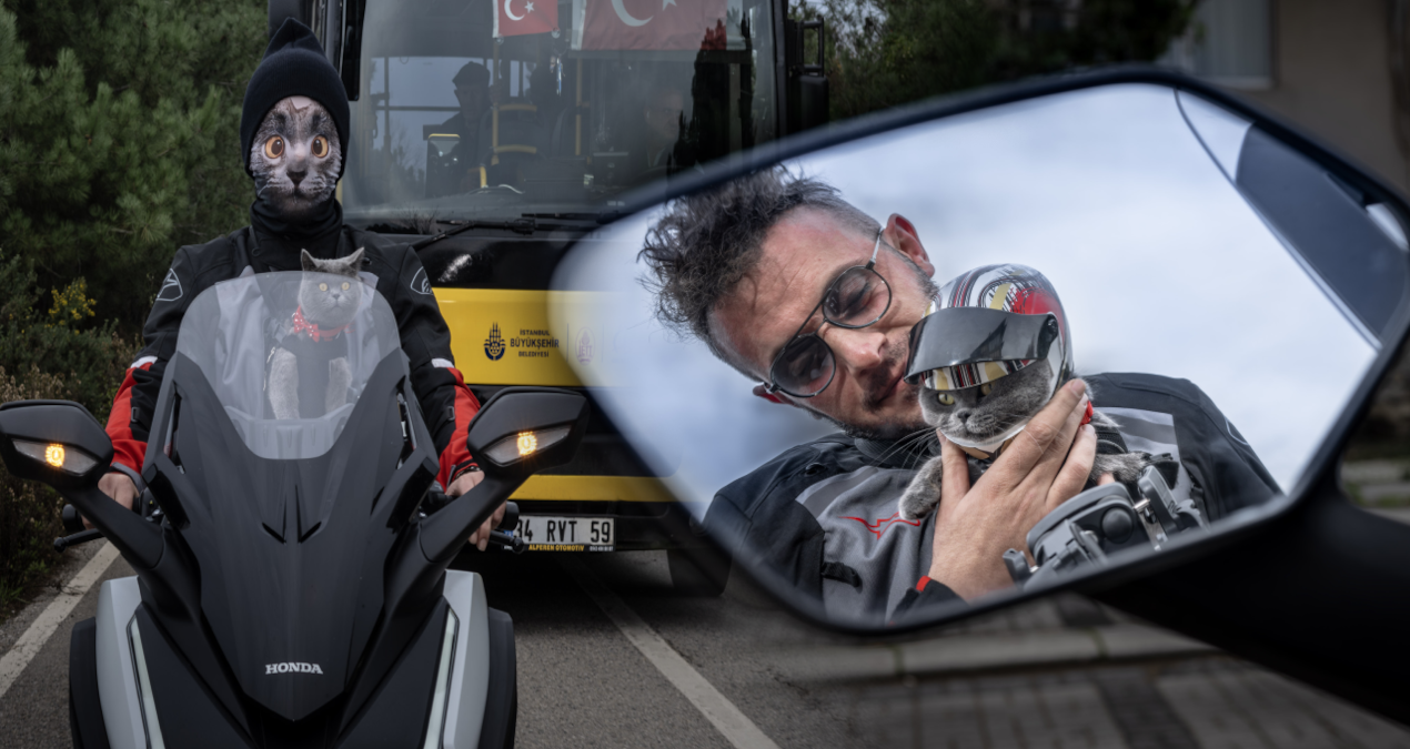 İlk önce uçakla İstanbul’a gelen ikili, Garipçe, Üsküdar, Eminönü, Sirkeci ve Taksim’de motosikletle dolaştı. Gittiği her noktada turistlerin ilgisini çeken kedi, kimi zaman da çocukların oyun arkadaşı oldu.