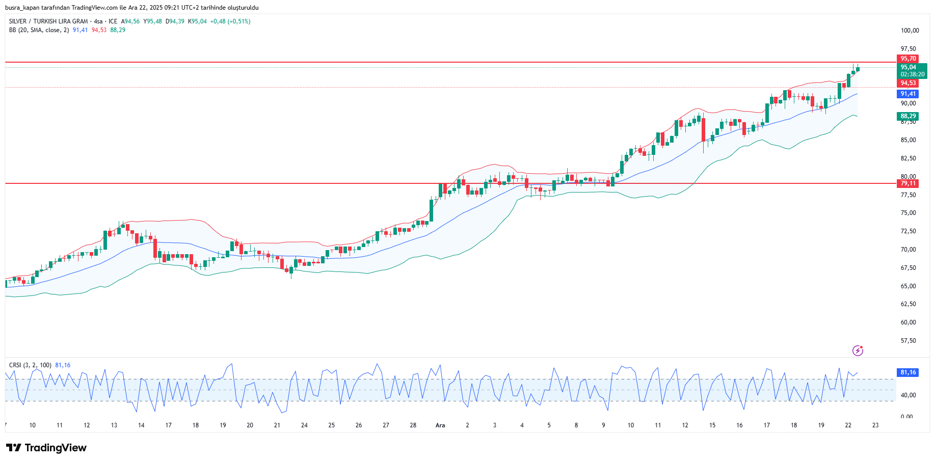 Gram gümüşte de dolar/TL ve ons gümüşün etkisiyle rekor üstüne rekor kırdı. Sene başına 32,64 liradan başlayan gram gümüş, yüzde 193’den fazla yükselerek, 95,70 liraya çıktı.